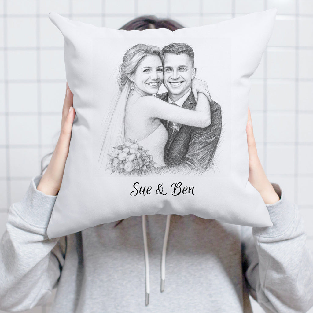 Diese personalisierte Kissenhülle bringt eine Extraportion Persönlichkeit in Ihr Zuhause. Aus Ihrem Foto wird eine liebevoll gestaltete Bleistiftzeichnung erstellt, die zusammen mit Ihrem Wunschtext exklusiv auf die Hülle gedruckt wird. So entsteht ein einzigartiges Design, das jedes Kissen zum Blickfang macht – ob auf dem Sofa, im Schlafzimmer oder als dekorativer Akzent im Wohnbereich.